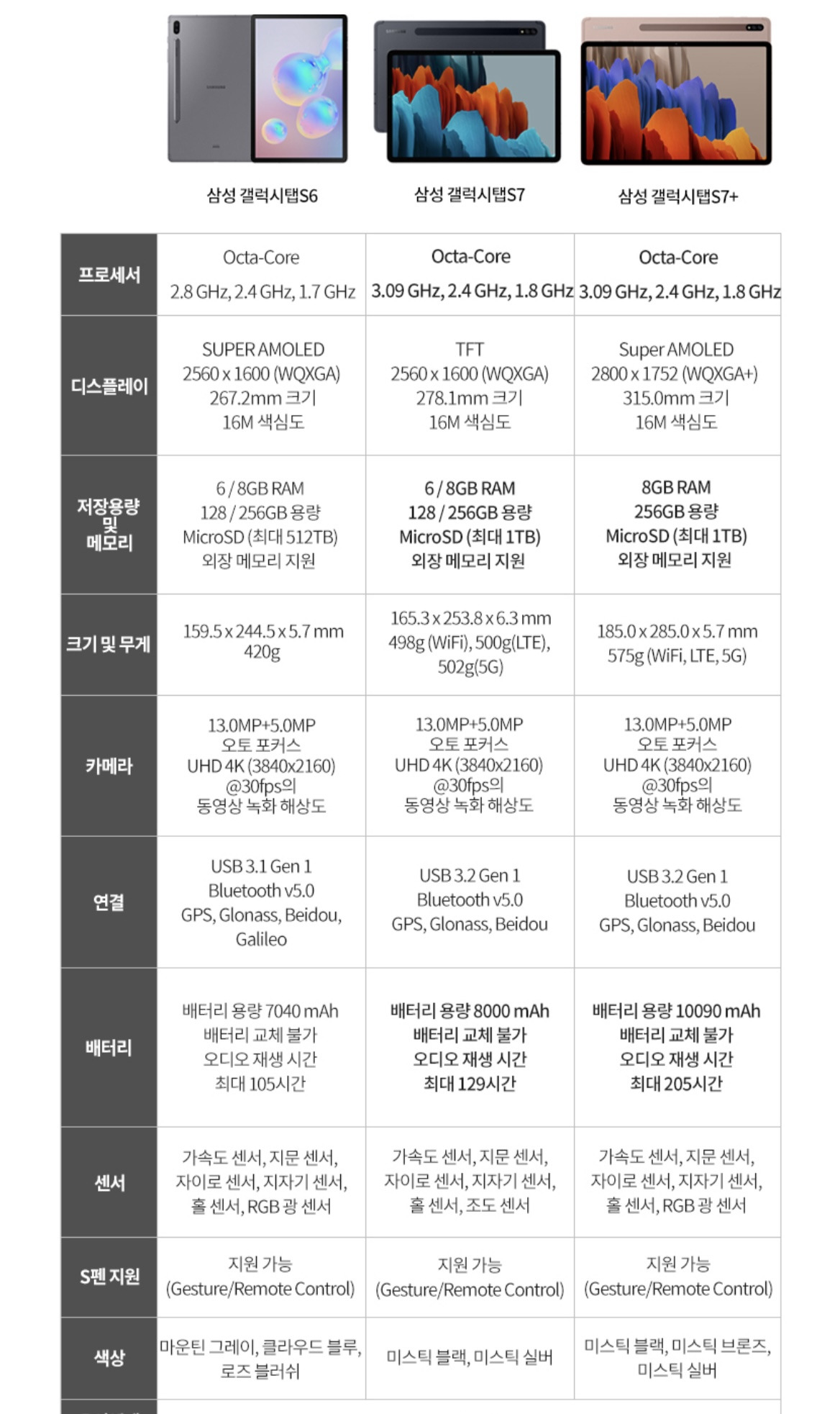 S7+에서 조금 기능빠진 가성비 탭인데 딱 원하는 스펙만 들어있어서.